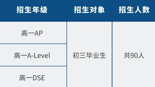 2025年,僑中國(guó)際計(jì)劃招收90名初三畢業(yè)生,涵蓋AP/AL/DSE國(guó)際課程,招生計(jì)劃如下圖所示。同時(shí)會(huì)招收少量?jī)?yōu)秀高一和高二插班生。