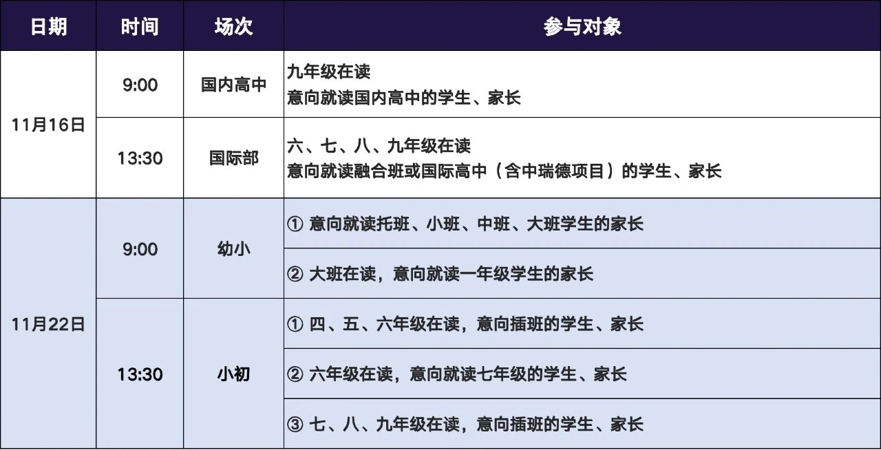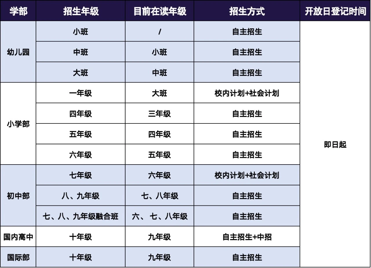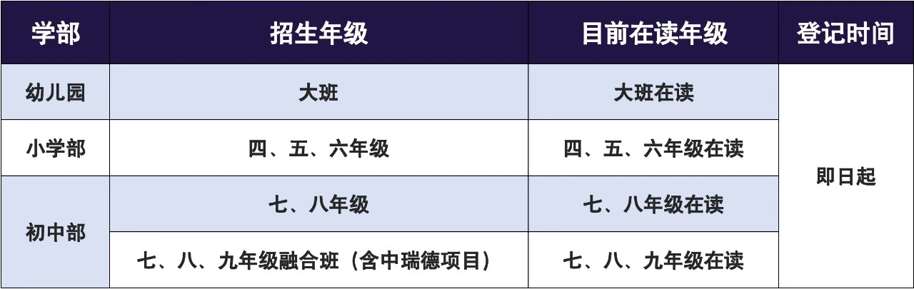 注:小學(xué)部一、二、三年級(jí)不招收插班生